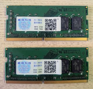 Dos módulos de memoria RAM DDR4 de 8GB cada uno, para portátiles, minipc, barebone, htpc. En perfecto estado, el test en el resto de las fotos. - Capacidad total: 16GB (2x 8GB) - Frecuencia: 3200MHz - Tipo: DDR4 SODIMM - Voltaje: 1.2V - Latencia: CL22