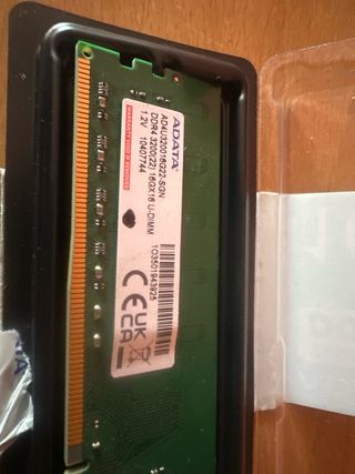 Módulo de memoria RAM DDR5 de 16GB de ADATA. - A estrenar - Capacidad: 16GB - Tipo de memoria: DDR5 - Velocidad: 4800MHz - Voltaje: 1.1V Se envía bien protegido para evitar daños en el transporte