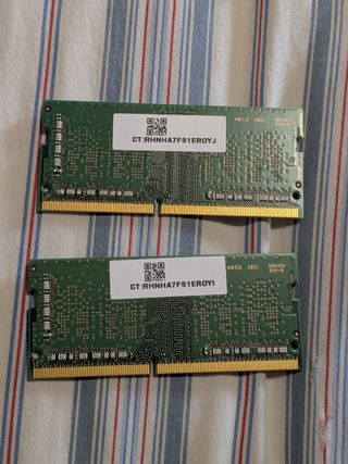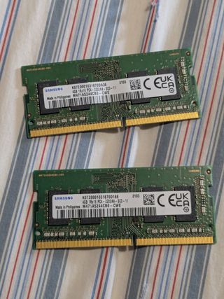 Kit de memoria RAM DDR4 de la marca SK Hynix. Incluye dos módulos de 4GB cada uno. - Capacidad total: 8GB (2 x 4GB) - Tipo de memoria: DDR4 - Velocidad: PC4-3200AA - Formato: SO-DIMM ✅ Se venden por aumento de memoria en mi equipo