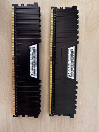 Dos módulos de memoria RAM Corsair Vengeance. - Tipo DDR4. - Velocidad de 3000MHz. - Capacidad total de 16GB (2x8GB).