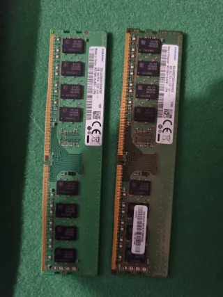 Conjunto de 4 módulos de memoria RAM DDR4 de 32GB cada uno, totalizando 128GB. Funcionan a una velocidad de 3200MHz. precio negociable por ellas, por otras piezas o PC completo - Capacidad total: 128GB (4x32GB) - Tipo de memoria: DDR4 - Velocidad: 3200MHz - Latencia: 16-20-20-38 - Voltaje: 1.35V - Versión: 5.40