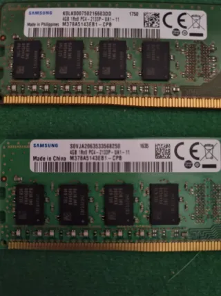 Dos módulos de memoria RAM DDR4 de 4GB cada uno. - Marca: Samsung - Capacidad total: 8GB (2x 4GB) - Tipo de memoria: DDR4 - Velocidad: PC4-2130P
