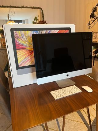 iMac 27” Retina 5K (2017) en excelente estado Vendo iMac 27 pulgadas con pantalla Retina 5K, modelo 2017, cuidado y usado en entorno profesional. Funciona perfectamente, sin fallos ni problemas. Especificaciones: Pantalla: 27” Retina 5K Procesador: Intel Core i5 quad-core 3,4 GHz Memoria RAM: 40 GB DDR4 (ampliada) Gráfica: Radeon Pro 570 con 4 GB Sistema: macOS Big Sur Incluye: Caja original intacta Cable de alimentación original Teclado Apple original Ratón Apple original Equipo fluido para diseño gráfico, fotografía, edición de vídeo, desarrollo web y uso profesional en general. La ampliación de RAM marca una gran diferencia.