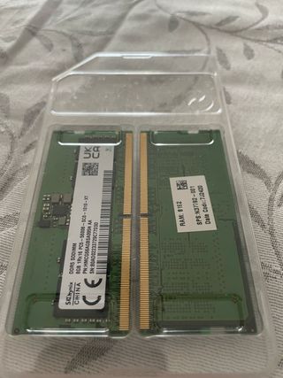 Pareja Memorias RAM SK-Hynix 8GB DDR5 5600MHz SODIMM PC5-5600B-SC0 1Rx16 1.1V SO-DIMM 262-Pin Gaming Laptop RAM Modulo (HMCG66AGBSA092N AA) OEM 8GBx2 > Total 16GB Usadas por menos de un año, como nuevas Escribeme en chat para hacer tu oferta!!