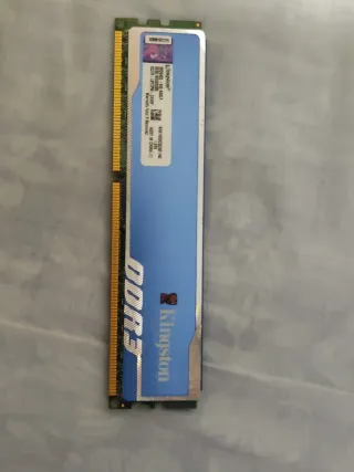 2 Memorias RAM Kingston HyperX DDR2. •Capacidad total: 2 GB (1x2 GB) •Velocidad: 800MHz (PC2-6400) •Latencia: CL5 •Voltaje: 2.0 V •Formato: DIMM (sobremesa) •Dual Channel •Disipador de aluminio color azul •Estado: Probado