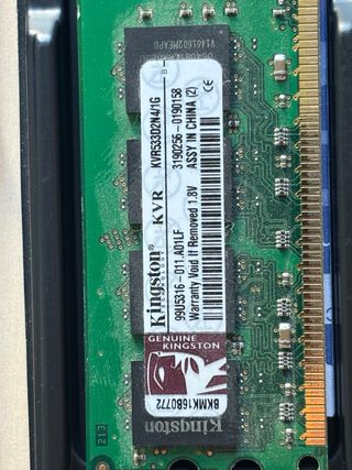 24 Módulos de memoria RAM Kingston de 2GB. - Precio de 7€ para cada módulo - Modelo: KVR13N9S6/2 - Tipo: DDR3 - Velocidad: PC3-10600 (1333 MHz) - Latencia: CL9 - Formato: UDIMM 240-Pin - Voltaje: 1.5V - Ensamblado en China