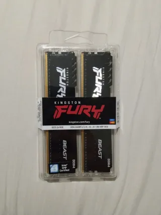 Memoría RAM de 8GB x 2 de 3200MHZ CL16 marca HyperX Black compradas en PcComponentes. Buen estado, las estoy vendiendo porque me he comprado otras RAM de mayor capacidad. Por favor. No confundir HyperX Fury con HyperX Fury Black ya que este modelo es más cara