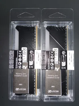 Kit de 2 módulos de memoria RAM Kingston FURY Beast. - Capacidad total: 32GB (2x16GB) - Velocidad: DDR5 5200MT/s - Latencia: CL40-40-40 - Voltaje: 1.25V - Tecnología: XMP Se vende por falta de uso, se abrio cuando las compre para probar su funcionamiento y posteriormente guardadas ya que tengo otros 2 modulos iguales.