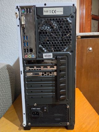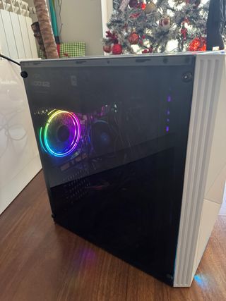 PC Gaming Entry Blanca RGB - Ryzen 5 2600X - 16GB RAM - Win 11 Pro Descripción: Vendo ordenador de sobremesa en perfecto estado, ideal para iniciarse en el gaming (LoL, Fortnite, Valorant, CS:GO), tareas de edición, programación o estudio. Estética muy cuidada en color blanco con iluminación RGB. Especificaciones técnicas: • Procesador: AMD Ryzen 5 2600X (6 núcleos / 12 hilos, hasta 4.2 GHz). • Placa Base: Gigabyte B450M DS3H (BIOS actualizada a versión F66, compatible con procesadores Ryzen serie 5000). • Memoria RAM: 16 GB DDR4. • Tarjeta Gráfica: Gigabyte GeForce GT 1030 2GB GDDR5 Low Profile (Versión GDDR5, rendimiento superior