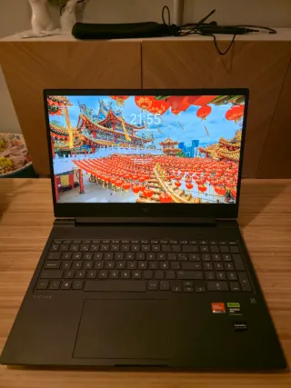 Portátil HP Victus 16-e0024ns con un diseño moderno y elegante modelo 2021. Muy potente para juegos e incluye cargador. Esta un poco levantada laca carcasa como se muestra en la foto pero funciona perfectamente no afecta en su rendimiento y tampoco en la pantalla, pueden ver en la foto que tiene muy buena resolución. - Pantalla de 16 pulgadas. - Diseñado para gaming y trabajo. - 16GB Memoria RAM - 516 GB Disco Duro - Procesador AMD RYZEN 5600H - Tarjeta Grafica 1650