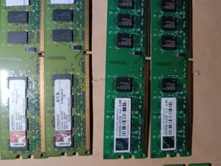 Conjunto de memorias RAM de la marca Kingston. - Memorias RAM de diferentes capacidades y tipos. - Ideales para actualizar o reparar ordenadores. Venta en conjunto 12, distintas capacidades DDR2 2 € por unidad