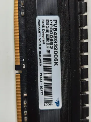 Memoria RAM Patriot viper de 8GB (2 módulos de 4GB cada uno). - Tipo: DDR4 - Velocidad: 3200MHz - Latencia: CL16 - Voltaje: 1.35V - Cumple con RoHS