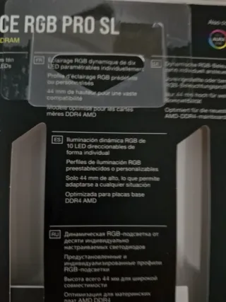 Módulos de memoria RAM Corsair Vengeance RGB Pro SL. - Tipo de memoria: DDR4 - Capacidad: 2x16GB (32GB total) - Velocidad: 3600MHz - Iluminación RGB personalizable