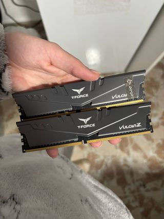 Kit de dos módulos de memoria RAM TeamGroup T-Force Vulcan Z. Memoria RAM TeamGroup T-Force Vulcan Z 8GB DDR4 2666 MT/s (PC4-21300) en exelente estado. Ideal para mejorar el rendimiento de tu PC para uso diario, multimedia y juegos. Con disipador metálico para mejor refrigeración y estabilidad. - Capacidad total de 16GB (2x8GB). - Tipo DDR4. - Velocidad de 2666 MT/s. - Latencias CL18 (18-18-18-43). - Voltaje de 1.2 V. - Certificado Intel XMP 2.0. - Formato DIMM Fabricado en Taiwán.