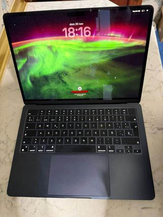 Portátil MacBook Air de 13 pulgadas con chip M3, 8GB RAM, 256GB de Memoria. Incluye dentro del precio: -Caja original -Cargador original en perfecto estado -Fundas transparentes protectoras -Funda alcolchada oficial negra -INCLUYE APPLE CARE+ hasta Septiembre de 2027 - Color Medianoche - Diseño delgado y ligero