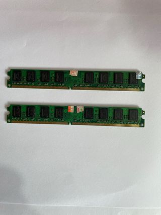 Se venden dos módulos de memoria RAM DDR2 de 2GB cada uno, sumando un total de 4GB. - Capacidad total: 4GB (2 módulos de 2GB). - Velocidad: DDR2 800MHz. - Tipo: PC2-6400, Non-ECC, Unbuffered.