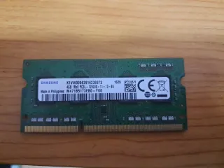 Módulo de memoria RAM DDR3L de 4GB. - Voltaje de operación: 1.35V. - Fabricante: Samsung. - Modelo: K1VW00062916239373. - Velocidad: PC3L-12800S. - Fabricado en Filipinas.
