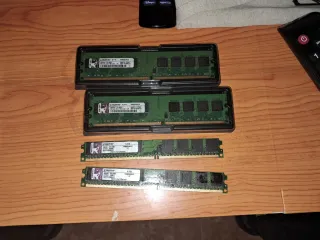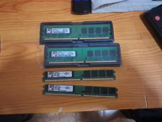 Se venden cuatro módulos de memoria RAM DDR2 de 1GB cada uno, con una velocidad de 800MHz. - Capacidad total: 4GB. - Marca: Kingston.