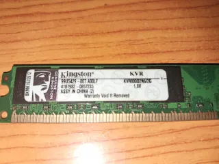 Módulo de memoria RAM Kingston ValueRAM modelo KVR667D2N5/1G, formato DIMM DDR2 para sobremesa. 🔹 Características técnicas: • Capacidad: 1 GB • Tipo: DDR2 SDRAM • Velocidad: 667 MHz (PC2-5300) • Voltaje: 1.8V • Latencia CL5 • Fabricado en China ⚙️ Estado: • En buen estado físico, sin daños visibles. • No ha sido testeado recientemente (no dispongo de equipo compatible). ⚠️ No se admiten devoluciones. Ideal para equipos antiguos, reparaciones o pruebas de hardware retro.