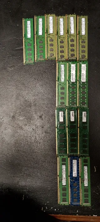 15 Módulos de memoria RAM Samsung. 1 gb, 2 gb y 4 gb - Color verde. - Conector dorado.