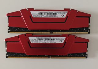 Dos módulos de memoria RAM G.Skill Ripjaws V de 16GB cada uno, para un total de 32GB. Son de color rojo y compatibles con DDR4. - Velocidad de 3600MHz. - Latencia CL19. - Voltaje de 1.35V.
