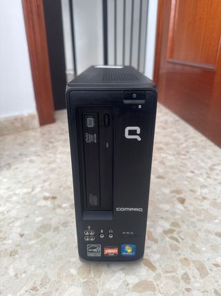 Torre de ordenador Compaq en color negro. DISCO DURO 1TB HDD Memoria RAM 4GB DDR3 - Unidad de DVD RW. - Puertos USB frontales. - Conexiones de audio frontales. - Lector de tarjetas SD/MMC. - Etiqueta Energy Star. - Etiqueta Vision AMD. - Etiqueta Windows 8 con su alimentador ,todo perfecto