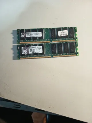 Se venden dos módulos de memoria RAM DDR de 1GB cada uno. - Capacidad total: 2GB (1GB x 2). - Marca: Kingston. - Tipo de memoria: DDR.