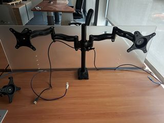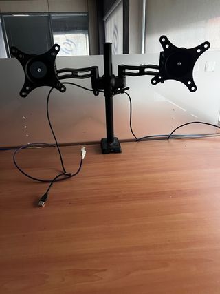 Soporte de escritorio para dos monitores. Permite ajustar la posición de cada pantalla de forma independiente. - Construcción robusta. - Brazos articulados para mayor flexibilidad. - Base estable. - Con toma para usb.