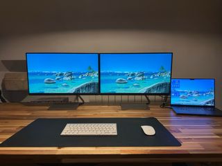 Se vende brazo para tres monitores junto con los monitores. - Brazo para tres monitores. - Monitor BenQ PD2506Q (25 pulgadas). - Monitor BenQ PD2725U (27 pulgadas). - Monitor BenQ PD2506Q (25 pulgadas). - Resoluciones: 3840 x 2160, 2560 x 1890, 2560 x 1719, 2560 x 1476, 2560 x 1233, 1920 x 1080.