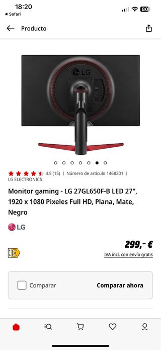 LG ultragear 27 pulgadas, 27GL650F, nuevo sin usar, solo montado para comprobar que todo está bien, tiene los plásticos puestos.