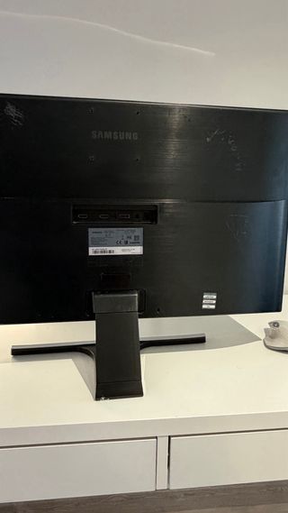 Nuevo cuesta 200 euros. Monitor de ordenador Samsung en color negro 27 pulgadas con cables incluidos (hdmi y energía) La resolución es 1920 x 1080 píxeles (Full HD). Especificaciones Principales Panel IPS de 27" con relación de aspecto 16:9 y tasa de refresco de hasta 75 Hz. Tiempo de respuesta de 5 ms, brillo de 250 cd/m² y ángulos de visión de 178°/178°. Soporta conexiones HDMI y VGA, con tecnologías como Flicker Free y FreeSync. - Diseño moderno y elegante. - Base estable para colocar sobre el escritorio.