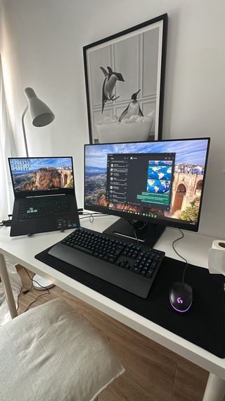 monitor ASUS TUF Gaming VG27AQZ de 27 pulgadas en perfecto estado de funcionamiento. • Resolución WQHD (2560x1440) – Mucho más nítido que Full HD • Panel IPS – Colores vivos y buenos ángulos de visión • 165 Hz – Fluidez real para gaming • 1 ms (MPRT) • Compatible con G-SYNC / Adaptive Sync • Base regulable en altura e inclinación Ideal tanto para gaming competitivo como para trabajar o estudiar con varias ventanas abiertas. Base con ajuste de altura, inclinación y pivot (rotación 90°). Eso significa que puedes colocarlo en modo vertical (portrait) sin necesidad de soportes. Incluyo el cable de alimentación y DisplayPort. (20€)