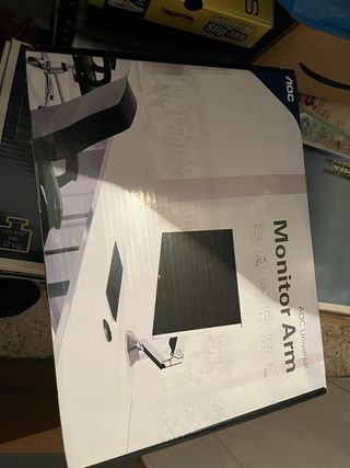 Brazo de soporte universal para monitor de la marca AOC. Permite ajustar la posición de tu pantalla de forma cómoda y ergonómica. - Soporta hasta 2 kg de peso. - Diseño elegante en color negro y plateado. NO ES NEGOCIABLE. Cualquier pregunta o sobre esto bloqueo directamente. No contesto a un “hola”, si escribes es porque la quieras comprar o pones las dudas que tengas claramente. Y si ves el anuncio es que está disponible.
