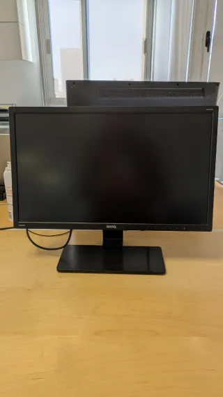 Monitor BenQ de 21,5 pulgadas en perfecto estado. Ideal para teletrabajo, oficina o como segundo monitor. Muy cuidado y sin píxeles muertos. • Resolución: Full HD 1920x1080p. • Entradas: 2 puertos HDMI y 1 VGA (puedes conectar PC y consola a la vez). • Tecnología: Eye-Care para evitar la fatiga visual. • Estado: Estéticamente perfecto, incluye cable de alimentación.