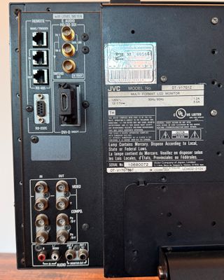 Monitor profesional JVC DT-V1710CG en color negro. Ideal para entornos de producción, edición y retro (game). La pantalla esta intacta a estrenar (ni una sola marca), 0 burn (quemados). Con apenas horas de uso (10039 horas de uso). Último modelo del 2007. Practicamente es casi imposible encontrarlo en este estado. Perfectamente calibrado ya que ha estado en un estudio para cierto trabajos muy especificos. Se incluye tarjeta SDI y marco panorámico. No incluye tarjeta IF-C01COMG. Pero es facil de encontrarla en el mercado con más configuraciones. Si se quiere añadirla habría que añadirle 50€ al precio del equipo. Saludos