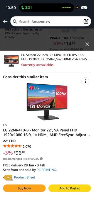 Vendo monitor LG 22MP4 de 21,5 pulgadas en perfecto estado. Usado en oficina, funciona perfectamente, sin píxeles muertos. ✔ Full HD 1920×1080 ✔ 75 Hz + AMD FreeSync ✔ HDMI y VGA ✔ Ideal para home office, estudio o segundo monitor Incluye: – caja original – cables – base original – documentación Entrega en mano en Madrid o envío por Wallapop.