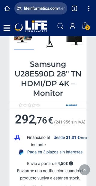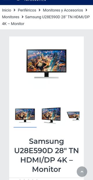 Monitor Samsung U28E590D de 28 pulgadas con resolución 4K UHD. Está en excelentes condiciones y listo para usarse. - Pantalla TN - Entradas HDMI/DP