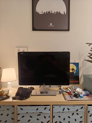 Pantalla monitor TV 24 marca HP No tiene mando pero fácilmente se consigue uno Excelente como pantalla de trabajo o como tele Excelente calidad de imágen Zona Clot sagrada familia