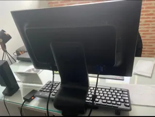 Se vende ordenador de sobremesa HP en color negro. Incluye monitor Samsung 22 pulgadas, sin cámara o micrófono incorporados. Incluye teclado. El ordenador funciona bien, pero muy lento. Igual le vendría bien una limpieza profunda/restaurar a ajustes de fábrica/lo que sea. Lo vendemos porque llevamos años sin utilizarlo, y necesitamos hacer hueco en casa.