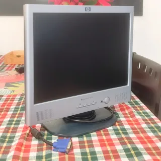 Monitor HP Pavilion 17 pulgadas para completar pc de la serie, muy bien estado de colores, brillo, contraste, poco uso, incluye los altavoces originales, tiene síntomas de uso pero leves, tubo impoluto, mirar foto, también ideal para juegos retro o vintage, los altavoces laterales vienen con un amplificador de buena calidad, muy difícil de conseguir con los altavoces de serie, también se pueden quitar a voluntad, mando video de funcionamiento.
