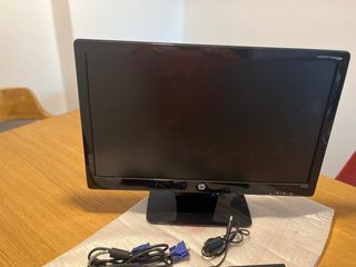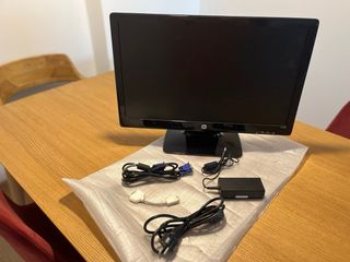 Monitor sencillo HP. Se entrega con cables. Pantalla de 34 x 27 cms Contando el marco, algo más.