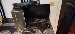 Equipo informático de sobremesa HP. - Diseño elegante en color negro y plateado. - Incluye torre, monitor teclado raton y barra de sonido y sus repectivos cables de alimentancion y anclajes funciona perfectamente recojida en vicalvaro