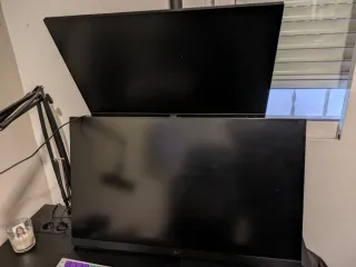 Se vende un conjunto de dos monitores. - Monitor AOC. - Monitor LG. Monitor Principal (LG) 165 Hz, 2440p (QHD/2K), Alta velocidad 32 Pulgadas Gaming competitivo, diseño gráfico, edición de video. Monitor Auxiliar (AOC) 75 Hz, 1080p (Full HD), Panel IPS 24 Pulgadas Referencias, chats, correo, redes sociales, trabajo auxiliar. Soporte Vertical doble (uno encima del otro)