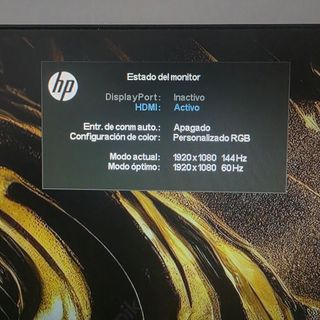 Monitor HP 24X de 24 pulgadas (23'8 pulgadas), ideal para juegos. Se encuentra en excelentes condiciones estéticas. Incluye el monitor, su soporte y su cable de alimentación. Diseño elegante y moderno sin bordes. Nuevo costó 215 euros. - Frecuencia de actualización: 144Hz - Resolución: FullHD 1920x1080 - 1ms de velocidad de respuesta. - Compatible con Nvidia G-Sync. - Altavoces integrados. - Incluye soporte de mesa ajustable en altura y en orientación vertical u horizontal. - Puertos: 1xHDMI, 1xDisplayPort, 1xSalida de audio Aux. Se recoge cerca del metro Opañel o Plaza Elíptica. Se puede probar. No se envía. * Algo Negociable*