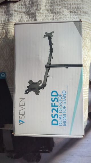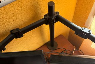 Se vende soporte doble para monitores. Prácticamente nuevo. Lo vendo porque he quitado un monitor. Válido para monitores de hasta 32" y 8 kg de peso. Descripción en las fotos.