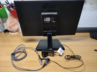 Monitor plano Led LG 19EN33. Incluye peana, cable de alimentación y cable HDMI con conexión RCA. Lo vendo por cambiar de modelo, funciona perfectamente. Tiene una rosca del soporte de pared que se coló en la parte trasera, sin afectar a su funcionamiento