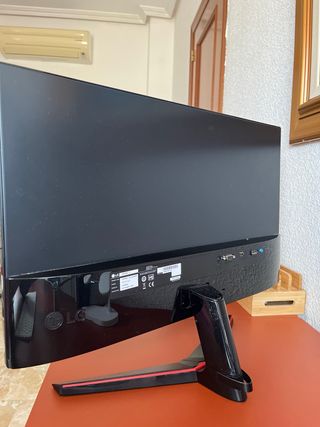 Monitor LG de 24 pulgadas en perfecto estado. Es una pantalla elegante y moderna, ideal para trabajar o jugar. - Resolución Full HD. - Diseño estilizado con detalles en rojo. - Incluye cable de alimentación.