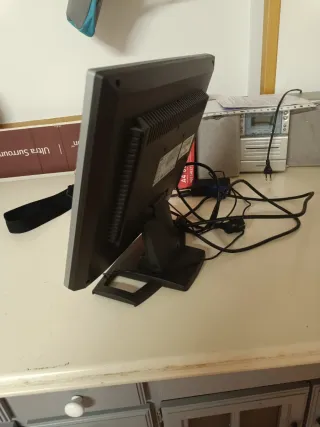 Monitor Compaq en buen estado. Incluye cables. - Pantalla de alta calidad. - Diseño elegante y sobrio. Medidas de pantalla (sin contar el soporte): 48cm x 29.5cm Aunque en la foto de uno de los cables falte un tornillito es que sin querer se lo quite, está puesto de nuevo y funciona perfecto como en la foto!