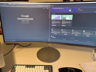 Monitor Samsung de 34 pulgadas con resolución QHD. Su diseño curvo ofrece una experiencia inmersiva. - Pantalla ultrawide. - Resolución QHD. - Tamaño de 34 pulgadas. - Precio nuevo 700€