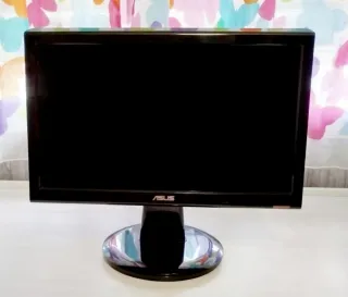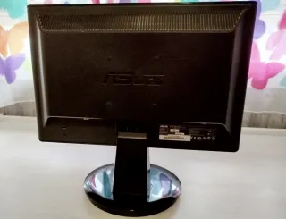 Monitor de sobremesa Asus en color negro. Tamaño compacto de 16 pulgadas (34,5x20cm). Conexión VGA. Poco uso. Funciona perfectamente - Diseño moderno y elegante. - Base circular brillante